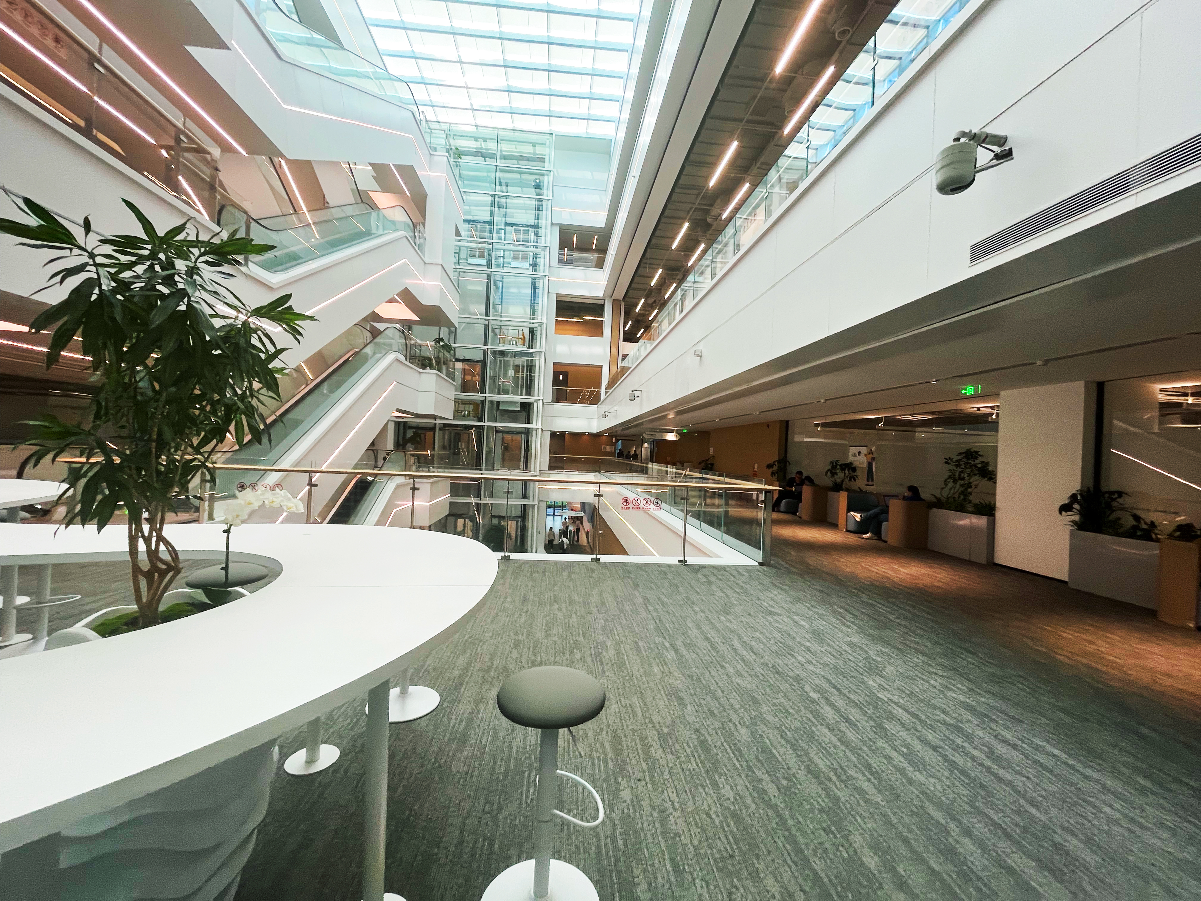 主題學習和交流介紹以後大家在工作人員的指引下共同前往參觀了新建不久的數字化展廳和辦公區域。開放舒适的辦公區域、人性化的行政服務及設施、多元兼容的工作環境讓大家感受到字節對員工的人文關懷。數字化展廳以項目爲單位展示了字節跳動最近幾年研發的各種前沿技術,包括抖音帶貨、識典古籍、火山車娛、VR體驗等。
